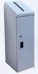 日常業務で発生する不要処分機密書類を明確、安全に一括管理し、情報流出を防ぐことができ、しかも省スペースで場所を取らず堅牢なスチール製機密書類専用の回収ボックスです。投入した書類が隙間からはみ出ない構造で、安心のカギ付きドア。回収中容器は堅牢で軽量のプラ段製です。他のサイズ、カラー、ステンレス等の素材なども製作致します。お気軽にお問い合わせ下さい。