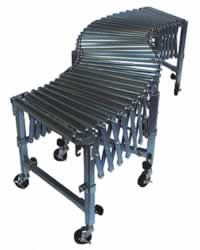 伸び・縮み・曲がり・移動が可能で、高さ調整もできるコンベヤです。