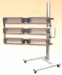 大型のヒータ面で照射盤90°回転可能。