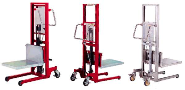 ●狭い通路でも簡単操作、場所をとらない足踏油圧式のリフターです。